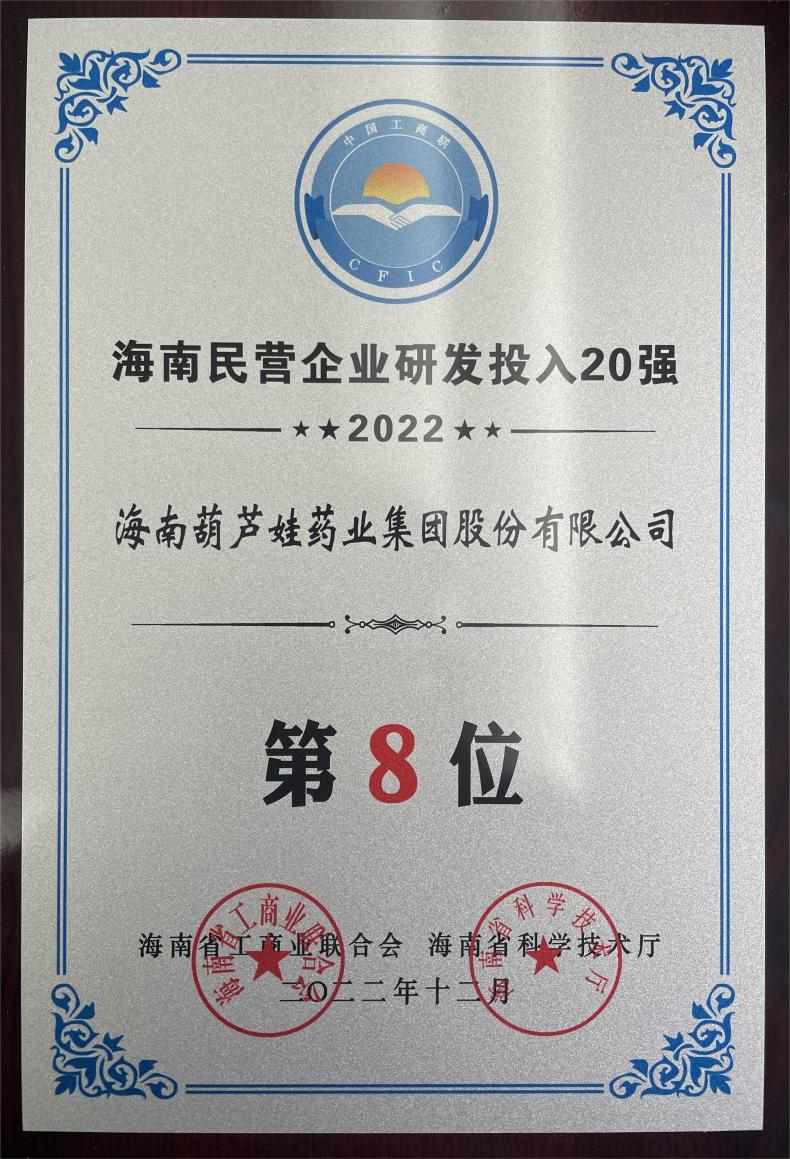 12月23日,2022海南民营企业50强和研发投入20强发布会在海口举行。会上发布了“2022海南民营企业50强”“2022海南民营企业研发投入20强”榜单和分析报告。365英国上市公司药业再次荣登两榜,在海南民营企业50强榜单中位列第25位,较去年上升8位,这也是公司连续三年登榜;在海南民营企业研发投入20强中位列第8位,较去年上升7位。